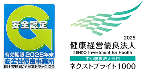 有限会社川滝運送は、「安全性優良事業所」「健康経営優良法人」に認定されました。